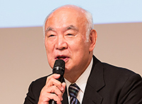 開館30周年記念事業の記者発表会で挨拶するサントリーホールの堤剛館長