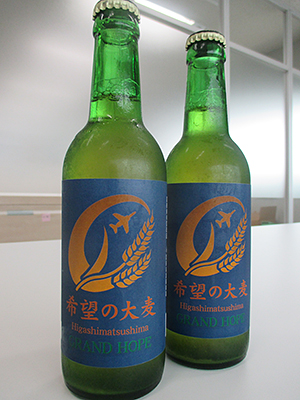 大麦の商品化のため、プロジェクトのメンバーはワークショップや協力者探しにも奔走。その甲斐あって、昨年収穫した大麦は麦茶や洋菓子のダクワーズに加工されたほか、東松島地ビール「GRAND HOPE」として醸造された。地ビールは市内で今年2月、3千本限定で売り出され、1カ月で完売。フルーティな香りとさっぱりとした味わいで、「地元が元気になるお酒」と、増産したほどの人気を呼んでいる。再度の完売後も多くの要望があり、11月には追加で3千本を発売する予定だ。