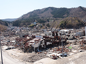 廃墟と化した女川町の中心街