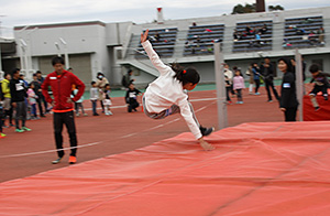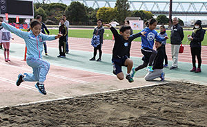 走り幅跳びではリオ五輪で日本選手団の旗手を務めた陸上十種競技の右代啓祐さんの指導で、つま先を上げ、かかとだけで歩くところからスタート。最後に砂場で幅跳びをする際は、応援の声と歓声が飛び交った。義足体験のエリアはリオパラリンピック400mリレー銅メダリストの佐藤圭太さんが傍につき、大人も子どもも義足をつけて歩いたり走ったり。体験した男の子は「重くて歩きにくい。走るのは大変だった」と実感を語ってくれた。