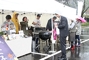 開催日の10月29日、ワイナリー周辺は鮮やかな黄色や赤の紅葉で彩られ、生憎の雨にもかかわらず、多くのワイン好きが来場。温かい料理に舌鼓を打った。