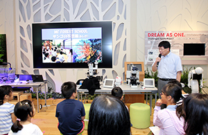2時間の教室はあっという間。「サンゴの不思議」に参加した小学3年生の男の子は、「こんな大きい顕微鏡を覗いたのは初めて。サンゴが餌を食べているところを見て、面白かった」と笑顔で帰途についた。