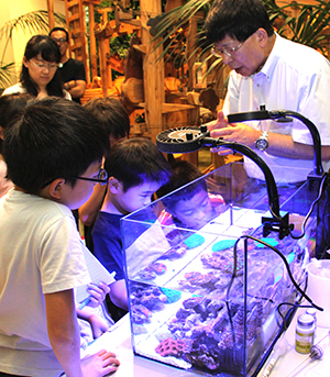 「国際サンゴ礁年」の今夏、サンゴ礁保全プロジェクトに取り組む三菱商事が、小学生向けの「サンゴ教室」を開催。
