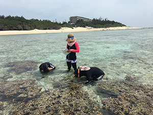 今年が「国際サンゴ礁年」であることをご存じだろうか。サンゴ礁保全のため、取り巻く危機やサンゴ礁の生態系を守る大切さについて理解を広げる年として位置づけられている。そのサンゴ礁保全に長らく取り組んできたのが、鈴木教授ら講師チームの先生たちだ。三菱商事がCSRの一環として2005年から始めた「サンゴ礁保全プロジェクト」の沖縄での調査に参画、琉球大学やNGO、ボランティアの人々と共にサンゴ白化現象に着目した研究を続けている。