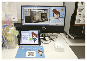 ローソンスマホペイを導入した店舗内。タブレットでバーチャル店員が決済の案内をしてくれる