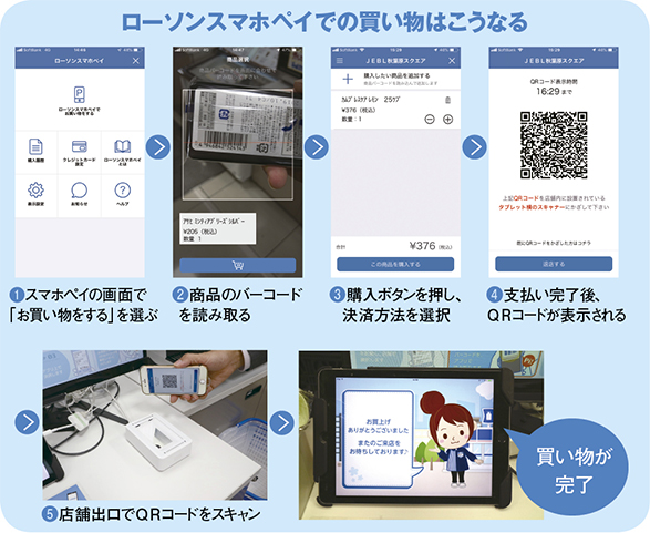 ローソンが18年4月から実証実験を開始し、11月末の時点で首都圏12店舗で使えるようになった先進的な機能が「ローソンスマホペイ」だ。名前からスマホによるキャッシュレス決済機能と思いがちだが、単なるスマホ決済とは少し異なる。通常のスマホ決済は、商品を持ってレジに行き、店員が商品のバーコードを読み取って、スマホで支払うという仕組み。ローソンスマホペイの場合は、まず商品を手に取りバーコードをアプリで読み取る。購入ボタンを押すと、あらかじめアプリに登録したクレジットカードやApple Payなどの決済方法で支払いが完了。1分ほどで簡単に買い物が終わる。