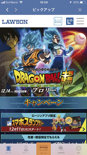 今後、話題を呼びそうなのは「スタンプラリー」機能だ。この機能を使い、12月11日から1月31日まで行われているのは「ドラゴンボール超 ブロリー スマホスタンプラリー」。期間中に店舗を訪れ、「スタンプをためる」ボタンを押すと、1日1個のスタンプがもらえる。その数に応じて、ドラゴンボールのゲームのアイテムを獲得できる。人気コンテンツと連動し、ゲーム感覚で店舗に誘導する仕掛けは、新たな強力集客ツールとなるかもしれない。