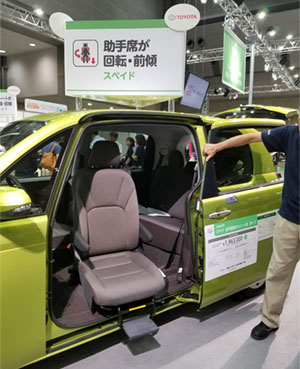 最近、足腰が弱ってきたと感じるシニアにおすすめなのは、シートからの立ち上がりや着座をサポートする「助手席回転チルトシート車」(プリウス、プリウスPHV、ポルテ、スペイド、シエンタ)や「サイドリフトアップチルトシート車」(アルファード、ヴェルファイア、ヴォクシー、ノア、エスクァイア)。座面を傾けることでお尻の位置をあまり下げずに地面に足を付けることができるので、膝への負担が軽減され、乗り降りが容易にできるようになった。さらに、従来車では立ち上がる際、クルマの横に1.2mのスペースが必要だったが、約55cmのスペースで乗降できるようになり車庫改造の経済的負担が軽減。隣にクルマが止まっていても乗り降りが可能になり、雨天時もシートの車外への出代が小さいので傘で介護が必要な方やシートが濡れにくくなり、雨の中でも快適に乗降できる。