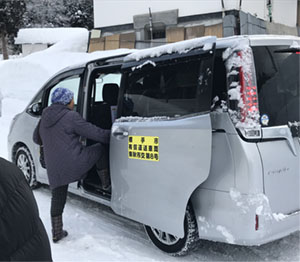 ウェルキャブを地域で役立たせる活動も行っている。舞台は秋田県横手市の狙半内(さるはんない)という地域で冬は豪雪地帯となる。過疎化による路線バスの廃止が心配される地域でウェルジョインを提供し実証実験を行った。実証実験後は市が車を購入して本格的に運用している。「坂道がきつくてバス停に行けなかった方が『家の前まで来てくれるおかげで買い物に行けるようになった』と、喜んでくれました。ドライバーは、地元のボランティアさん。集落を回るようになって地域内の交流も増えたと聞いています。ウェルジョインが地域力アップにも貢献できることが実証されました」(中川主査)。