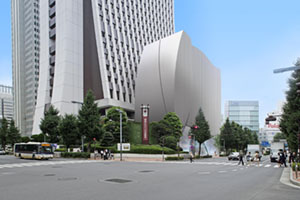 東京・新宿駅西口から徒歩5分、西新宿の超高層ビル街の入り口に聳え立つ、損害保険ジャパン日本興亜の本社ビル。敷地内では本社ビルに隣接し、2年前から新たな建築物が工事中だったが、このほど周囲を覆っていたシートが外され、新しい建物のおおよその外観が行き交う人々の目に入るようになった。