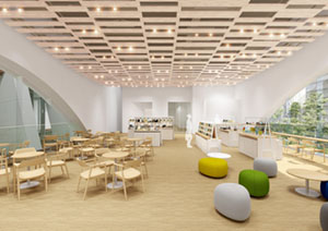 美術館2階の休憩スペース・ミュージアムショップ(提供:大成建設株式会社一級建築士事務所)