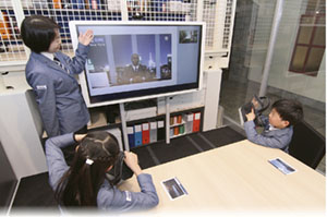 スクリーンに映るスミス氏とのやりとりは、5人とも緊張して真剣そのものの面持ち。プレゼンが成功し、スミス氏が「ワンダフル、サンプルを送ってほしい」と話すと、みなほっとした表情になった。