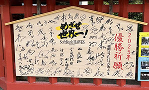 ホークスは毎年、日本三大八幡宮の福岡「筥崎(はこざき)宮」に優勝祈願している。2025年の祈願の奉納絵馬には「めざせ世界一!」(冒頭写真)とあり、中央に監督・小久保裕紀、左右に王貞治、後藤芳光の自書があり、選手の名前がずらり並ぶ。孫の「世界一」は実現していないが、「夢」としては繋がっている。